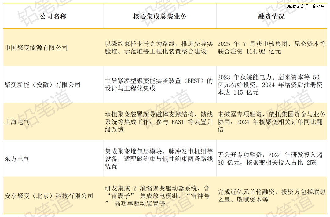 比如聚变新能主导的 BEST 装置,会采购西部超导的超导线材、安泰科技的偏滤器材料,再通过自身技术整合,建成能实现聚变反应的完整装置,是产业链的“核心枢纽”。